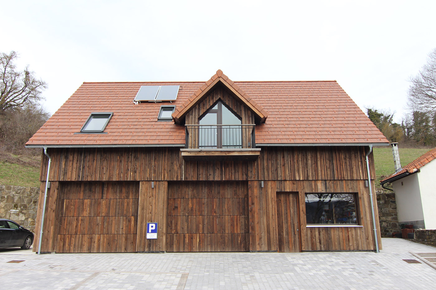 Ante la necesidad del promotor de albergar en un edificio un garaje y un taller de carpinteria, se integra un edificio compacto que alberga una vivienda passivhaus en su planta de bajocubierta, con acceso independiente y que se integre en el pueblo de Jaurrieta.