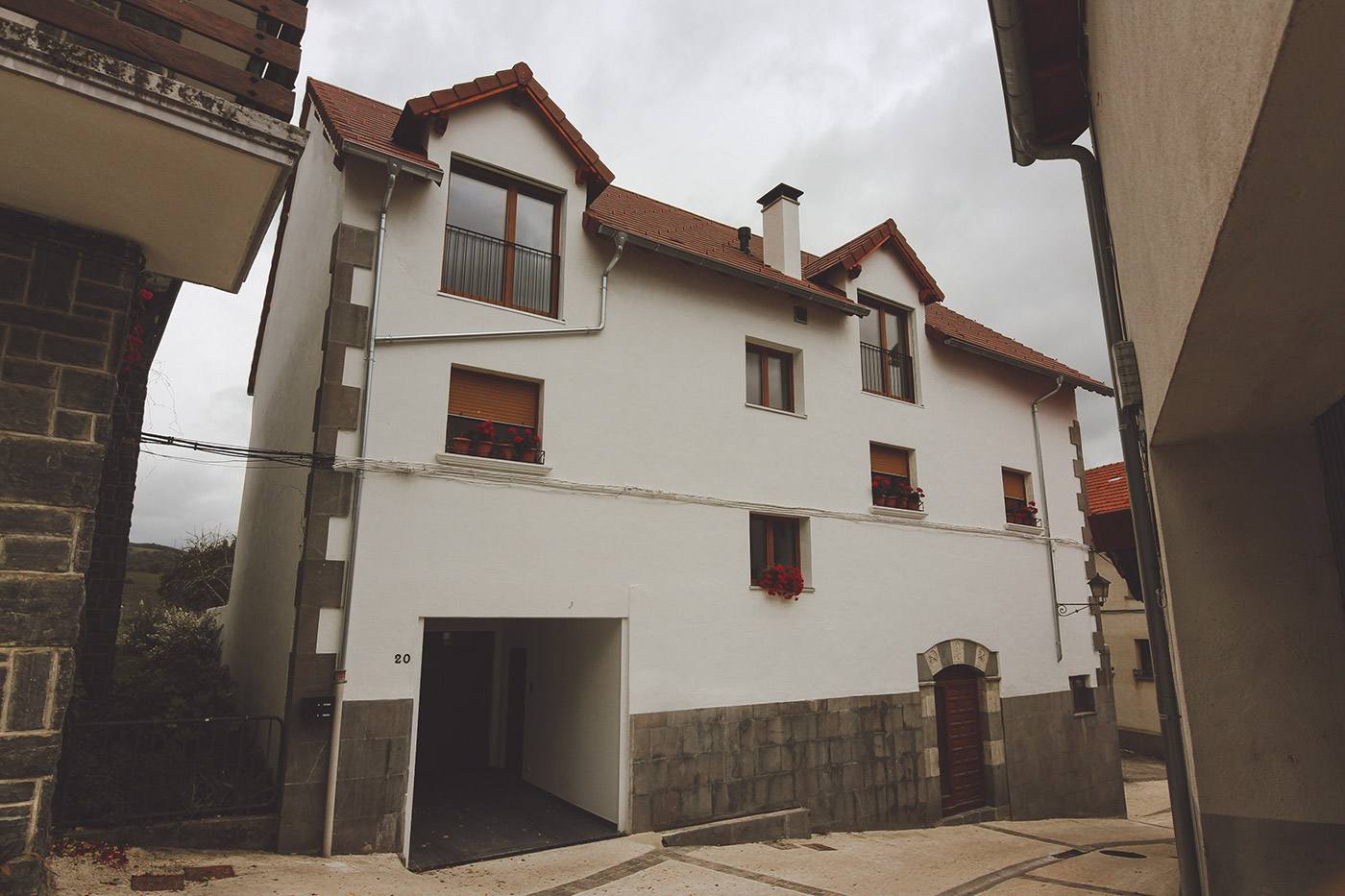 Se habilita un nuevo porche como nuevo acceso a las viviendas. Se introduce una escalera compensada comoda en un espacio muy reducido para evitar grandes modificaciones en la vivienda existe. Se han creado 2 viviendas accesibles con un nuevo ascensor sin modificar el volumen del edificio.