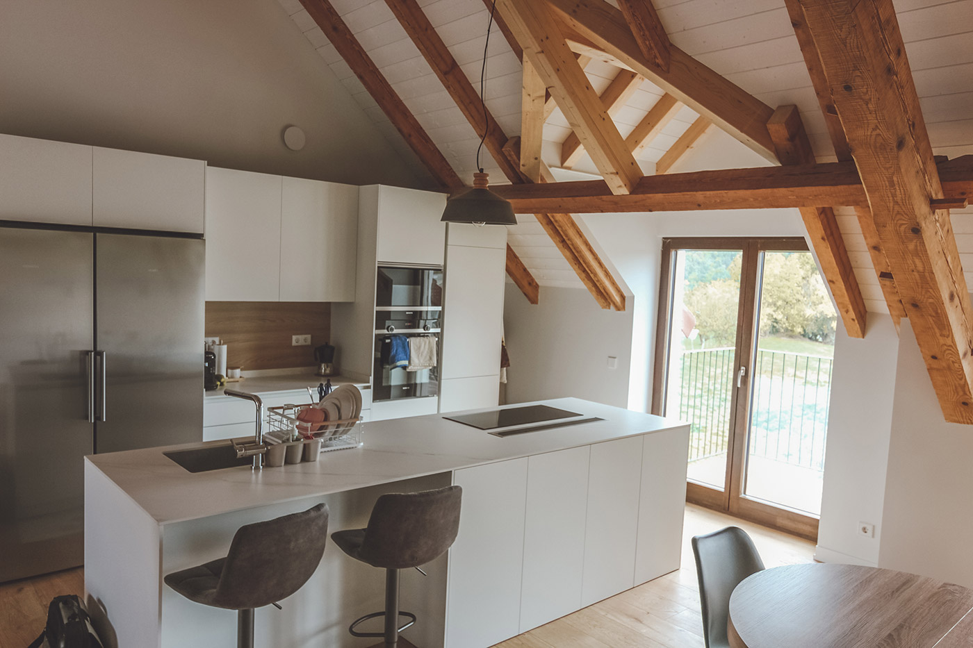 El objetivo del proyecto era generar una vivienda en un desván, que cumple el estandar Passivhaus y con el desafio de cambiar la escalera existente a una escalera comunitaria.